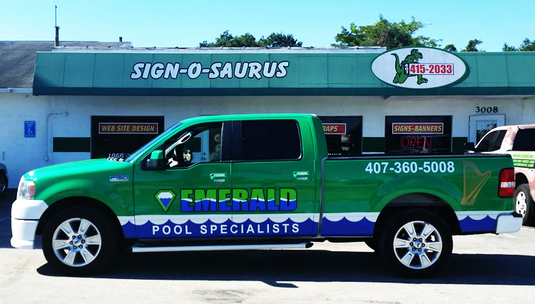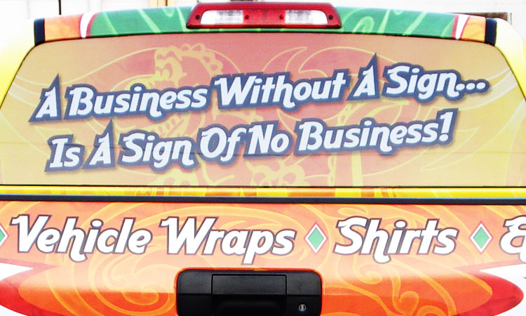 Vehicle Graphics are often mistaken for a vehicle wrap. A vehicle wrap encompasses most of, or all of, a vehicle. While vehicle graphics add a little something extra to plain vehicle lettering. This can be your logo, or a photo of the work you do, or really anything you want it to be. Let the professionals at Sign-O-Saurus help you design something that will start making you money today!
